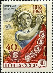 "Komsomol to the Virgin Lands", 1958 stamp