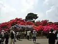 This park was originally a garden for the daimyō of Tatebayashi Domain and was constructed in the early Edo period. It contains about 10,000 azalea plants, some of which are over 800 years old and is a popular sightseeing spot in Gunma Prefecture when the plants bloom from late April to early May.[2] The park formerly contained a greenhouse with exotic plants (closed in 2010) and an aquarium (closed in 2015). The park has a total area of 49,890 square meters. It was designated a National Place of Scenic Beauty in 1934.