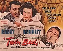 Twin Beds is a 1942 American comedy film directed by Tim Whelan, and starring by George Brent and Joan Bennett. It was distributed by United Artists. The screenplay was written by Kenneth Earl, Curtis Kenyon and Eddie Moran, based on the play of the same name by Salisbury Field and Margaret Mayo.