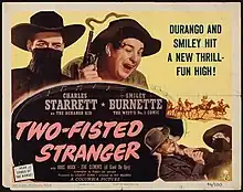 Two-Fisted Stranger is a 1946 American Western film directed by Ray Nazarro and written by Robert Lee Johnson. The film stars Charles Starrett, Doris Houck, Zeke Clements and Smiley Burnette. The film was released on May 30, 1946, by Columbia Pictures.[1][2][3]