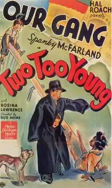 Two Too Young is a 1936 Our Gang short comedy film directed by Gordon Douglas.[2] Produced by Hal Roach and released to theaters by Metro-Goldwyn-Mayer, it was the 147th Our Gang short to be released.