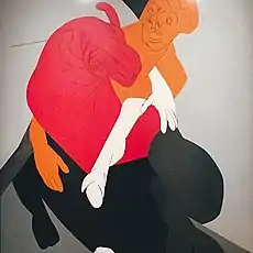 Tyeb Mehta held the then record for the highest price an Indian painting has ever sold for at auction ($317,500 USD or 15 million Indian rupees) for Celebration at Christie's in 2002.[14] In May 2005, his painting Kali sold for 10 million Indian rupees (approximately equal to 230,000 US dollars) at Indian auction house Saffronart's online auction.[15] A reinterpretation of the tale of demon Mahishasura by Mehta showing goddess Durga locked in an embrace with the demon sold for $1.584 million.[16][17][18] In 2008 one of his paintings sold for $2 million.[19]