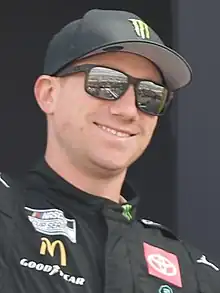 Tyler George Reddick (born January 11, 1996) is an American professional stock car racing driver. He competes full-time in the NASCAR Cup Series, driving the No. 45 Toyota Camry XSE for 23XI Racing and part-time in the NASCAR Xfinity Series, driving the No. 24 Toyota Supra for Sam Hunt Racing. He is a two-time champion in the NASCAR Xfinity Series, winning consecutive titles in 2018 and 2019. Reddick was the victor in the closest finish in NASCAR's top three series, edging out Elliott Sadler at Daytona International Speedway during the 2018 Xfinity Series season when he won by 0.0004 seconds.