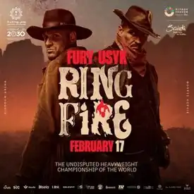 Tyson Fury vs Oleksandr Usyk, billed as Ring of Fire, is an upcoming heavyweight professional boxing match contested between English WBC heavyweight champion Tyson Fury and Ukrainian WBA (Super), IBF, WBO, IBO and The Ring heavyweight champion Oleksandr Usyk for the undisputed heavyweight championship. The bout is scheduled to take place on 17 February 2024 in Riyadh, Saudi Arabia.