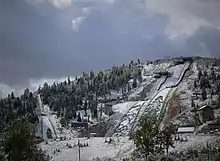 Ski jumping national championships organized by the National Ski Association of America (NSA)[1][2] were held annually from 1905 - 1962.[3] Ski jumping, a winter sport competed on specially constructed ski hills, had been introduced by Norwegian immigrants to the U.S. in the 1880s, with ski clubs and annual tournaments beginning shortly afterwards.[4] The National Ski Association, formed by five Midwestern clubs, established categories of participation, scoring rules, and scheduled sanctioned meets, including the National Championship Tournament.