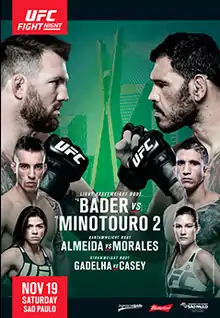 UFC Fight Night: Bader vs. Nogueira 2 (also known as UFC Fight Night 100) was a mixed martial arts event produced by the Ultimate Fighting Championship held on November 19, 2016, at Ginásio do Ibirapuera in São Paulo, Brazil[2]