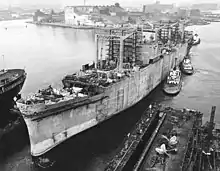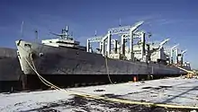 During September 1970, Caloosahatchee participated in the naval blockade off the coast of Lebanon during the Black September in Jordan. The conflict was fought between the two major components of the Jordanian population, the Palestinians represented by the Palestine Liberation Organisation (PLO) under the leadership of Yasser Arafat and the native Jordanians represented by the Jordanian Armed Forces under the leadership of Hussein of Jordan.[2] In 1974 Caloosahatchee was transferred to the Bethlehem shipyard for a seven-month overhaul. While approaching dock facilities, the ship struck a dockside chock and bent the starboard shaft. The ship spent seven months effecting repairs to the starboard shaft. In addition, twin screws were transported by truck to replace the existing worn out screws.
