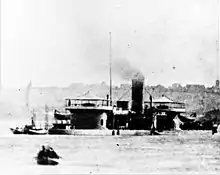 Miantonomoh, named after the Narragansett chief, Miantonomoh,[8] was laid down in 1862 at the Brooklyn Navy Yard, New York, launched on 15 August 1863, and commissioned on 15 September 1865[1] with Commander Daniel Ammen in command. Miantonomoh was assigned to the North Atlantic Squadron and made a brief cruise along the East Coast before she was decommissioned at the Washington Navy Yard. In late April 1866 she steamed to New York and was overhauled there in preparation for a voyage across the North Atlantic on a diplomatic visit to Russia. Now under the command of Commander John Beaumont, the monitor departed on 6 May escorted by the paddle steamers Augusta and Ashuelot.[8] After a brief stop at Halifax, Nova Scotia, the ships reached St. John's, Newfoundland, on 23 May. There Miantonomoh embarked the Assistant Secretary of the Navy, Gustavus Fox on 3 June and the British naval attaché, Captain John Bythesea, VC.[9]