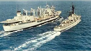 ![]() USNS Mississinewa (T-AO-144) refueling the destroyer Forrest Sherman (DD-931) | |