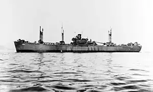 Maintaining her busy pace of operations, Naos departed Guadalcanal for the Admiralties. She operated out of Manus between 30 September and 25 October, thence sailed the next day to carry troop reinforcements and supplies to the Palaus. She reached Kossol Passage 31 October, and for more than a month she operated in coastal waters off the northern Palaus. During yet another tropical storm 8 November, Naos sent a volunteer crew to rescue 26 men from SC–633 which was thrown upon a reef by heavy seas. Early in December she embarked 1,114 troops and loaded US Army tanks at Anguar and Peleliu before departing in convoy 8 December. Steaming via the Russell Islands, she returned to Nouméa 22 December. Four days later she resumed shuttle runs which continued throughout the South Pacific for the next five months.[3]
