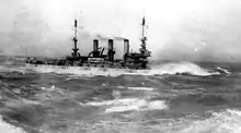 Vermont in heavy seas, probably during the cruise of the Great White Fleet