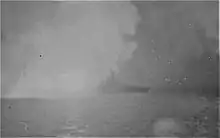 At about 04:00, Mogami and then Yamashiro turned to retreat, both burning; the destroyer Shigure fled with them, though she had not suffered any serious damage. Shortly thereafter, Oldendorf ordered his battleships to make a 150-degree turn, and West Virginia complied at 04:02, leading the other battleships on the new course, which ran parallel to Yamashiro's line of retreat. Confusion aboard California led her to fall out of position, and in so doing, mask the rest of the battleships and force them to cease firing to avoid hitting her. Shortly thereafter, reports of Japanese torpedoes in the water prompted the American battleships to turn to the north at 04:18 to avoid them.[26] This marked the end of the action, as the remaining Japanese ships retreated in the darkness. In the course of the action, West Virginia fired sixteen salvos at the Japanese ships; this proved to be the last ever battle between battleships.[4][27]
