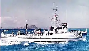 The year 1969 began with a two-week fleet service mine test at Buckner Bay. After an upkeep period in Sasebo, Woodpecker returned to sea for a joint exercise with the Japanese Maritime Self Defense Force. On 3 March 1969, the ship commenced her regularly scheduled overhaul. Sea trials, refresher training, and two inspections followed. Woodpecker sailed for Vietnam on 13 July and resumed "Market Time" patrols. Her duties included search and rescue missions, illumination firing, plus harassment and interdiction fire. The ship returned to Sasebo on 1 October. Mine countermeasures refresher training at Buckner Bay from 10 to 22 October was followed by a brief stay at Sasebo. From 3 to 13 November, Woodpecker joined in a mine countermeasure exercise with the Korean and British navies. Then, a dependents' cruise and a port visit to Kagoshima, Japan, ensued. The remainder of the year was spent in leave and upkeep status at Sasebo, Japan.[2]