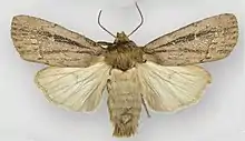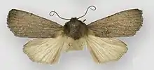 Ufeus plicatus is a moth in the family Noctuidae. It has been recorded from Illinois, Iowa, Minnesota, Missouri, Nebraska, Pennsylvania, southern Quebec and Connecticut, but might be widespread in north-eastern North America.[1] The species is associated with large poplars, especially eastern cottonwood (Populus deltoides) growing in moist areas along rivers where there is abundant loose rotting strips of bark near the base of the tree.