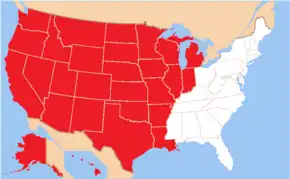 | Territory | Western United States, all of the Midwest (except Ohio), Alaska, and Hawaii |