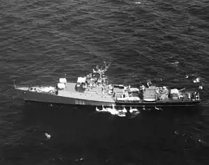 The corvette was a member of the 400th division of anti-submarine ships of the 68th brigade of ships of the Black Sea Fleet, which took an active part in training and combat activities of the fleet. MPK-43 served in the Mediterranean, sailing more than 43,000 miles. As part of the ship's anti-submarine strike groups, the ship won the prize of the Chief of the USSR Navy four times for anti-submarine training (the last in 1989).[3]