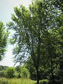 Originally identified as clone 812, Lutèce was not promoted by the Dutch owing to unfounded fears that it may prove susceptible to coral spot fungus (Nectria cinnabarina). Instead, 812 was acquired by the French Institut National de la Recherche Agronomique (INRA), which subjected the tree to 20 years of field trials in the Bois de Vincennes, Paris, before patenting and release in 2002 as 'Nanguen' = Lutèce.[3][4] Lutèce has been deemed the modern cultivar most closely resembling the native European elms.[5]