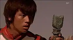 In all of Tiga's hosts, they transforms through the use of Sparklence (スパークレンス, Supākurensu)[lower-alpha 3] or any of its variations.[42] In certain situations, Daigo Madoka transforms by placing the Sparklence in the same position as his chest before pressing the button and the Sparklence's "wing" appendages form Tiga's Protector before forming the whole body. This technique was briefly shown transforming him into a human-sized Tiga, which was once used against the Alien Raybeak platoon. In most episodes and other succeeding media, the hosts transform by raising the Sparklence and pressed the button in a similar way to the original Ultraman via his Beta Capsule.[43] Upon transformation, their body change into light energies that eventually turns into Ultraman Tiga.[40]
