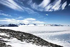 Union Glacier (79°45′S 082°30′W / 79.750°S 82.500°W), is a large, heavily crevassed glacier which receives the flow of several tributaries and drains through the middle of the Heritage Range, Ellsworth Mountains, Antarctica. The glacier drains from the plateau at Edson Hills on the west side of the range and flows east between Pioneer Heights and Enterprise Hills. Union Glacier was mapped by U.S. Geological Survey (USGS) from surveys and U.S. Navy (USN) air photos, 1961–66. The name was applied by Advisory Committee on Antarctic Names (US-ACAN) in association with the name Heritage Range.[1]