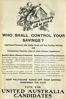 - ↑ Smash the Red Wreckers and Save Australia (Election poster advertisement). United Australia Party via The Sun. 17 December 1931.