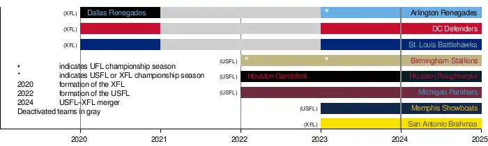 - ↑ TSN ca Staff (September 28, 2023). "XFL, United States Football League announce intention to merge". TSN. Retrieved September 28, 2023.