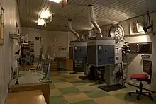 The cinema obtained equipment allowing panoramic 70mm film projection during the next round of remodelling and repairs, which took place in 1971–1973 based on a project prepared by architect Jaroslav Šmídek. The projection box received two UM 70/35 projectors and one ME 9 projector and a 6-channel amplifier system was installed to ensure stereo sound. The smoking lounge was turned into a bar; the cash desks were moved opposite the entrance staircase and an office took their place. Again, new seats were installed in the auditorium: the new arrangement saw the seating capacity decrease to 328 stalls seats and 145 balcony seats (altogether 473 seats).[19] Thanks to these changes, the Moskva cinema, as it was called at the time, became the best-equipped cinema in Brno.[59]