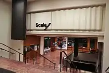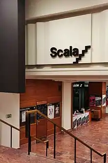In 1991 – after the Velvet Revolution – the cinema returned to its original name Scala.[4] "Kulturní a informační centrum města Brna" (Brno Cultural and Information Centre) was established the same year and merged with the "Správa městských kin" organisation in November 1994; since 1 January 1995, Scala was officially managed by this new centre.[24] In October 1999, the first multiplex opened in the Olympia shopping mall in Brno: the second in the Czech Republic (Galaxie in Prague was the first) and the first one that met European standards.[25] That year, Scala was the 7th most visited cinema in the Czech Republic with 99,000 visitors, but Olympia already ranked higher and took the 6th place with 120,000 visitors.[26] The second multiplex in Brno, Velký Špalíček, opened in 2001 and single-screen cinemas started closing one by one during the next five years. Scala thus remained one of the last single-screen cinemas in Brno, together with Art and Lucerna.[27][28] The operator of the city cinemas filed a complaint to the Office for the Protection of Competition against the preferential treatment that multiplexes received from distributors, but was not successful.[29][30]