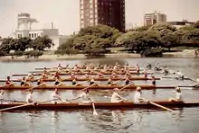 In the next season, Reed Adler took over as men's coach for the Ducks, and he was followed by Chuck Knoll in 1976.[10][11] Coach Brian Cole entered the 1968 Long Beach Rowing Trials, finishing two spots shy of an Olympic berth and earning a bronze medal.[12][13]
