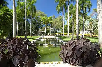 The UPR-Mayagüez campus encompasses approximately 315 acres (1.27 km2). The campus has a sports complex that includes a gym, a weight room, rooms for dance/aerobic classes, courts for basketball, a tennis and volleyball complex, a natatorium, an outdoor sports field and the Rafael A. Mangual Coliseum. The Hotel Colegial serves as the only on-campus dorms and is reserved for athletes. The campus offers two cafeterias, a bookstore, a Popular Bank branch,[31] a lounge called La Cueva de Tarzán (Tarzan's cave) and a computer center, although several academic departments also operate their own computer laboratories. In 2016 after more than a decade in planning MUSA, a museum of art, was inaugurated on the campus.[32] In 2019 a new cafe was opened in the College of Business Administration.[33] The campus also contains the ruins of a historic structure called La Casilla del Caminero.