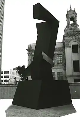 The abstract sculpture, installed at the corner of Van Ness Avenue and Hayes, outside Louise M. Davies Symphony Hall, measures 8 ft. 5 in. x 5 ft. 8 in. x 4 ft. 3 in. It rests on a concrete base measuring approximately 16.5 in. x 11 ft. x 11 ft. The sculpture's plaque reads: "SIDNEY GORDIN / AMERICAN born Russia, 1918 / UNTITLED / 1969 / bronze / San Francisco Art Commission".[1]