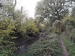 This is a section of the Basingstoke Canal between Up Nately and the Greywell Tunnel. There is water in the canal and the towpath is a public footpath.[1]