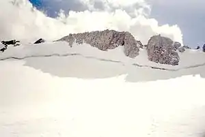 Upper Fremont Glacier is in the Fitzpatrick Wilderness of Shoshone National Forest in the U.S. state of Wyoming.[2] This Wind River Range alpine glacier is associated with the largest grouping of glaciers in the U.S. Rocky Mountains and lies on the north slope of Fremont Peak, the third tallest mountain in Wyoming. Upper Fremont Glacier is at an average altitude of 13,450 ft (4,100 m) and is one of the highest altitude glaciers in the American Rockies.[3]