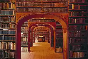 The Library of Milich was a private collection by the Świdnician lawyer Johann Gottlieb Milich (1678-1726). It contained legally and religious items, 7,000 books, 200 handwritten scripts, 500 coins and a handful of curiosities. In 1727 the library was handed to the Augustum-Annen-Gymnasium in Görlitz by his will under the condition to keep the library open to the public two days a week for the next 200 years. Over time the library has been merged with donations from inhabitants of Görlitz and the collection of the local monastery library.[3]