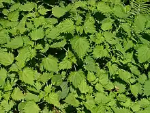Urtica thunbergiana, also known as the Japanese nettle or hairy nettle, is a species of perennial herbs in the family Urticaceae.[1][2] It is found in Japan, China and Taiwan. The habitat of the species is moist forests in the mountains. It is in flower from July to September, and its seeds ripen from August to October. The larvae of Vanessa indica, a species of butterfly, are known to feed on U. thunbergiana.