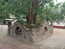 ![]() The ancient Sacred Fig tree and its rampart | |