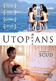 Utopians is a 2015 film by the Hong Kong film-maker Scud, the production-crediting name of Danny Cheng Wan-Cheung. It is the story of a university student who becomes deeply attracted to his (male) professor, and whose life changes as a result.[1][2] The film received its world premiere on 31 October 2015 at the New Directors Film Festival in Japan. Utopians explores several themes traditionally regarded as 'taboo' in Hong Kong society and features full-frontal male nudity in several scenes. It is the sixth of seven publicly released films by Scud. The six other films are: City Without Baseball in 2008, Permanent Residence in 2009, Amphetamine in 2010, Love Actually... Sucks! in 2011, Voyage in 2013 and Thirty Years of Adonis (which features footage from Utopians[3]) in 2017. The eighth film, Apostles, was made in 2022, as was the ninth, Bodyshop, but neither have yet been released.[4] The tenth and final film, Naked Nations: Hong Kong Tribe, is currently in production.[4][5] Utopians includes a scene in which the main character, played by mainland China actor Adonis He Fei, is shown completely naked stroking his erect penis as he sighs with pleasure until he ejaculates in the uncut version of the film.[6]
