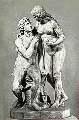 It was there, in 1845, at the suggestion of Veith's librarian, an Augustinian professor from Brno named František Klácel, that Levý began creating the reliefs on a rock massif situated in wooded hill near Liběchov that are now known as the "Klácelka Cave." Levý probably took his inspiration for the sculptures from Klácel's poem Ferina Lišák (a fable about a fox). The attention attracted by these reliefs encouraged Veith to send him to Munich for studies with Ludwig Schwanthaler, where he was taught the Academic style. It was here that he produced one of his best-known works Adam and Eve in 1849. He then returned to Klácelka, adding motifs from Czech history, as well as working on new decorations for the castle chapel.[3]
