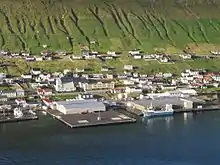 Vágsverkið of SEV produces electricity. It is located on the south side of Vágsfjørður.