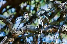 The lower areas of the wilderness area are covered by a taiga forest of Scots pine. Less common trees include downy birch, goat willow, aspen and rowan. Logging in the past has mostly occurred in the southern part ("Kessi"), a large proportion of Vätsäri's forests being old-growth forests.[11] The barren soil makes for poor growth conditions and most of the ground vegetation in the forests is subshrubs. One area with limestone rock features green spleenwort. The reserve is located in an area between a western and eastern vegetation zones, giving rise to unique combinations of species, such as Siberian spruce and red cottongrass.[7]