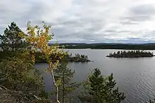 The Vätsäri Wilderness Area (Finnish: Vätsärin erämaa, Swedish: Vätsäri ödemarksområde) is located along the northeastern shore of Lake Inari in Inari, northern Finland, stretching all the way to the Finland–Norway border. The landscape is dominated by taiga forests of Scots pine, bog and bodies of water. The northeastern part rises as a treeless fell ridge. Vätsäri is one of twelve wilderness areas in Lapland and covers an area of 1,550 square kilometers (600 sq mi).[2] The wilderness has one marked trail and a few cabins. The reserve is under the management of Metsähallitus (Administration of Forests) and was established with the other wilderness reserves in 1991. It is part of Pasvik–Inari Trilateral Park along with Øvre Pasvik National Park and Øvre Pasvik Landscape Protection Area in Norway, and the joint Norwegian–Russian Pasvik Nature Reserve.
