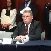 Víctor Manuel Galicia Ávila took protest as senator of the LXIII Legislature in February 2018.[2]