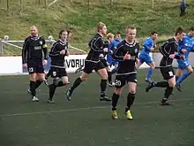 Víkingur Gøta in a match in Vodafonedeildin against FC Suðuroy in October 2010. They used their away colours (black).