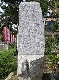 The Võ Cạnh inscription or Inscription C. 40 is the oldest Sanskrit inscription ever found in Southeast Asia, discovered in 1885 in the village of Võ Cạnh, about 4 km from the city of Nha Trang, Vietnam.[1][2] This inscription is in the form of a 2.5 m high stone stele, with three uneven sides.