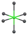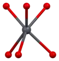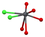 Vanadinite is a lead chlorovanadate with the chemical formula Pb5(VO4)3Cl. It is composed (by weight) of 73.15% lead, 10.79% vanadium, 13.56% oxygen, and 2.50% chlorine. Each structural unit of vanadinite contains a chlorine ion surrounded by six divalent lead ions at the corners of a regular octahedron, with one of the lead ions provided by an adjoining vanadinite molecule. The distance between each lead and chlorine ion is 317 picometres. The shortest distance between each lead ion is 4.48 Å. The octahedron shares two of its opposite faces with that of neighbouring vanadinite units, forming a continuous chain of octahedrons. Each vanadium atom is surrounded by four oxygen atoms at the corners of an irregular tetrahedron. The distance between each oxygen and vanadium atom is either 1.72 or 1.76 Å. Three oxygen tetrahedrons adjoin each of the lead octahedrons along the chain.[2][9][10]