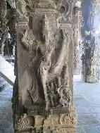 The third precinct has the shrine of Goddess Perundevi Thayar; it is customary for devotees to visit the shrine first before visiting the main Perumal shrine.[10] There are four small pillared halls, identical in structure, called Thulabara Mandapas built during the 1532 for a ceremony of Achyutaraya of the Vijayanagara Empire.[10]