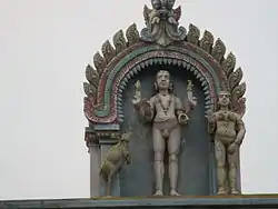 As per legends, Shiva is believed to have destroyed eight different demons namely Andakasuran, Gajasuran, Jalandasuran, Thirupuradhi, Kaman, Arjunan, Dakshan and Taaragasuran. There are Ashta Veeratanam temples built signifying each of his victories in the war,[7] and also as places where he is believed to have performed with fury.[8] The eight temples are: Tiruvadigai Veerattaaneswarar Temple at Thiruvadigai, Tirukkovilur Veerateshwarar Temple at Tirukoilur, Veerateswarar temple at Korukkai or Thirukkurukkai, Amirtagateswarar Temple at Thirukadaiyur, Vazhuvur Verateswarar Temple at Vazhuvoor, Keelaparasalur Veerateswarar Temple at Tirupariyalur, Kandeeswarar Temple at Thirukkandiyur and Tiruvirkudi Veerataneswarar Temple at Thiruvirkudi.[3] Shiva in all these temples are described to have used bow and arrow, trident and spear.