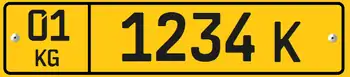 The following plates are black on yellow. These flags show the code KG, but not the Kyrgyz flag. These plates have the following format: ## - #### L, where the first two digits are the province codes. The letter would be either of the following: