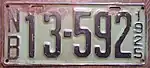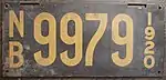1920 | Yellow serial on black flat metal plate; vertical "NB" and "1920" at left and right respectively | none | 12345 | 1000 to approximately 11800 | |