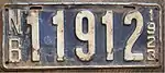1916 | Dark blue serial on light blue porcelain plate; vertical "1916" and "NB" at left and right respectively | none | 1234 | 3000 to approximately 6500 | |