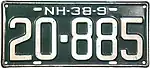 1920 | White serial on dark green flat metal plate; "N H" and "1920" centered at top and bottom respectively | none | 12345 | 100 to approximately 35000 | |